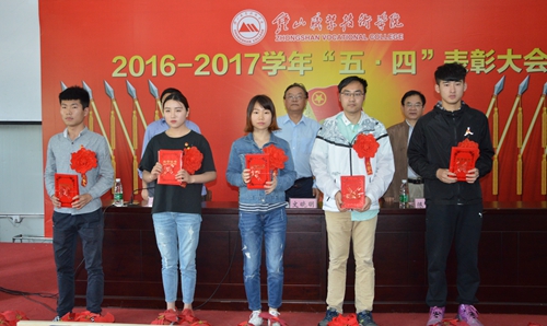 5月9日下午,学院2016—2017学年“五•四”表彰大会在7110教室举行。党委书记文晓明、副院长陈俊、黄磊出席会议并为获奖个人和集体颁奖,各二级学院、相关部门主要负责人,各党总支书记、分团委书记、辅导员老师及学生代表200余人参加了大会。大会由团委书记史玉祥主持。