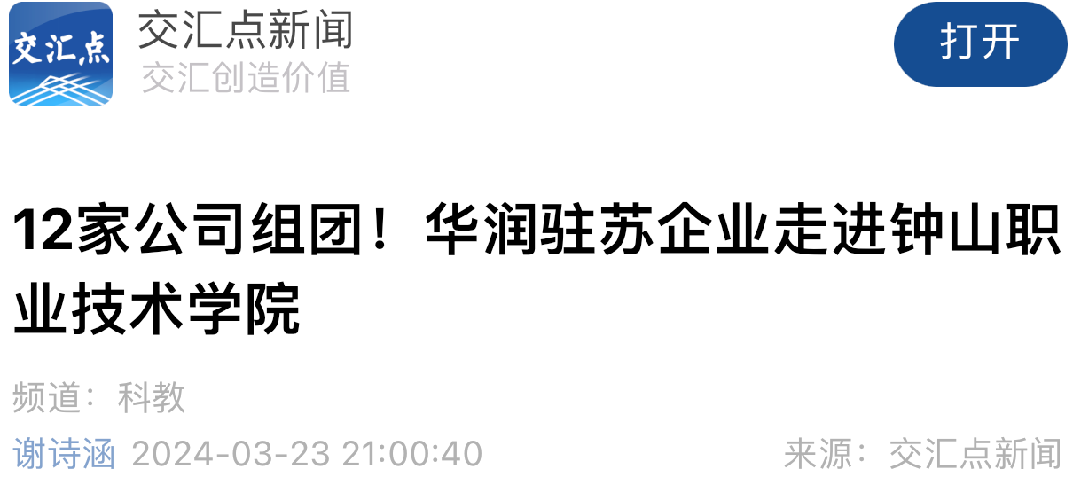 近日,中国江苏网、新华日报交汇点、扬子晚报网等媒体报道我校迎来第二届华润驻苏企业进校园招聘文化周。全文如下: