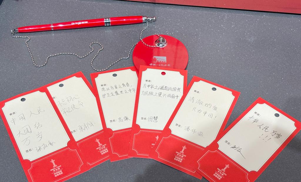 志愿服务接近尾声时,学子们自发聚集在纪念馆“初心墙”前,一张张便签纸写下新时代青年的赤子之心:“为中华之崛起而读书,为民族之复兴而奋斗”“愿以吾辈之青春,护卫这盛世之中华”“清澈的爱只为中国”。