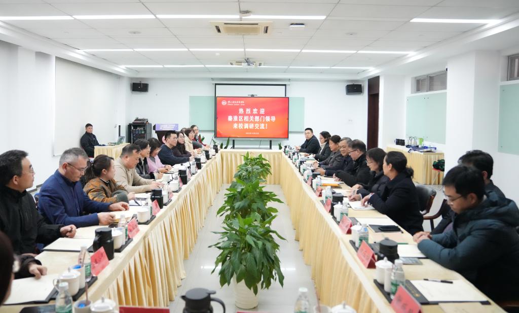 12月22日下午,秦淮区人力资源和社会保障局、民政局及10家企业组团来我校开展政校企合作交流。秦淮区人力资源和社会保障局局长刘爱美、副局长翁俊妹、人力资源管理科科长雷廷,民政局老龄发展科科长李勤浩,我校校长蒋伏心、党委书记翟天灵,相关部门及二级学院负责人参加会议。会议由副校长宋庆彬主持。