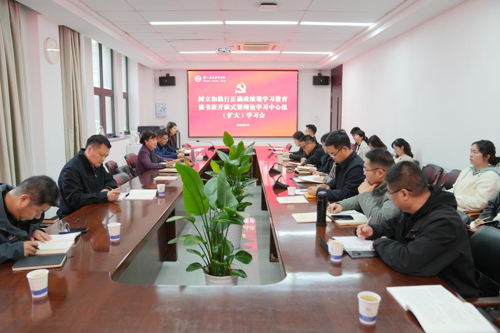4月22日下午,学校举行树立和践行正确政绩观学习教育读书班开班式暨党委理论中心组(扩大)学习会,学习习近平总书记关于树立和践行正确政绩观的重要论述。校党委委员、纪委委员,党群部门负责人、马克思主义学院院长、党总支书记、机关党支部书记、教师党支部书记、学生党支部书记参加学习。党委书记翟天灵主持会议。