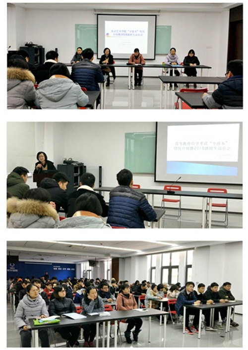 分院袁劲果院长从“选择”点题,启发学生在人生的重要阶段做出明智的规划定位,鼓励学生终生学习。她以PPT的形式强调了接本的意义及重要性,详细讲解了南京艺术学院“专接本”考试的组织与实施、收费标准、课程设置、考试通过率、毕业和学位条件等。她希望同学们根据自己的实际情况选择适合自己的接本专业,珍惜提升学历的机会,立足长远,全身心地投入到新的学习目标中。(文:朱博娴 摄影:王勇)
