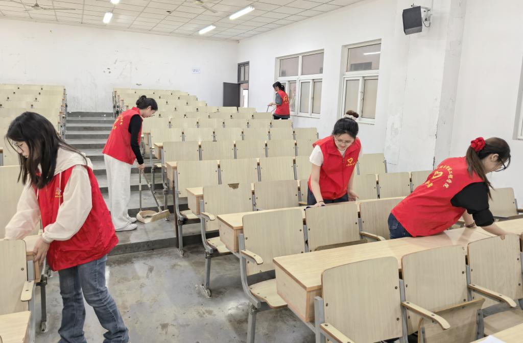 6名毕业生党员带领学院的第四十期入党积极分子开展毕业季教室清扫,以模范行动践行初心使命,为母校留下整洁环境。