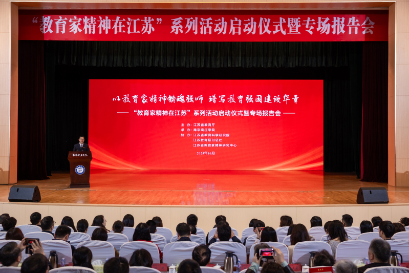 10月31日,为深入学习贯彻习近平总书记关于大力弘扬教育家精神的重要指示要求,引导江苏广大教师将教育家精神转化为思想自觉和行动自觉,“教育家精神在江苏”系列活动启动仪式暨专场报告会在南京晓庄学院举行。我校组织教师代表前往现场观看。