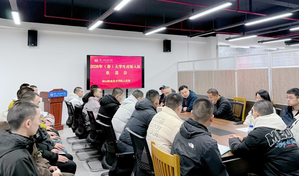 近日,校人武部召开2026年春季大学生应征入伍欢送会。人武部全体人员、应征入伍学生辅导员和全体应征入伍学生参加了欢送会。